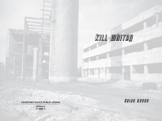 This is the interior design for Kill Whitey by Brian Keene, which was published by Cemetery Dance Publications in 2008.