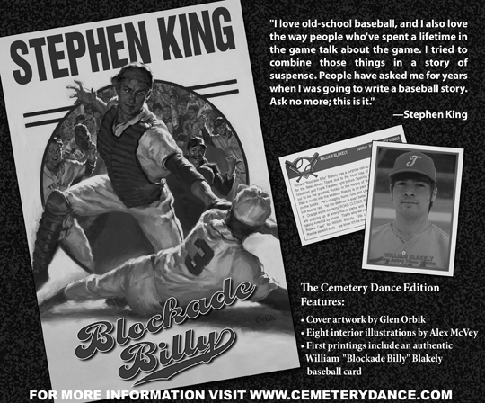 This is a black and white print ad for Blockade Billy by Stephen King.