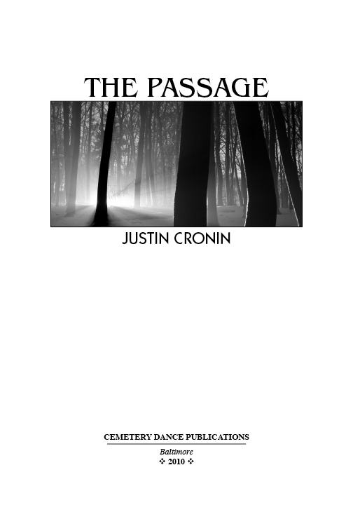 This is the title page, interior page design, and Limited Edition signature sheet for The Passage by Justin Cronin, which was published by Cemetery Dance Publications in December 2010.