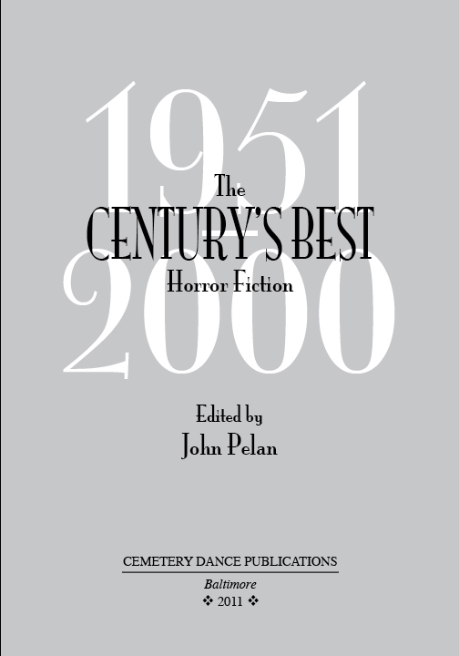 This is the title page design for The Century’s Best Horror Fiction edited by John Pelan, which was published by Cemetery Dance Publications in January 2012.